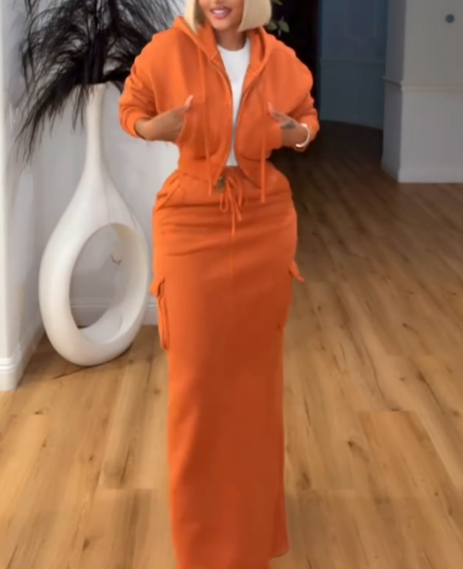 Cargo Hoodie and Cargo Skirt Set