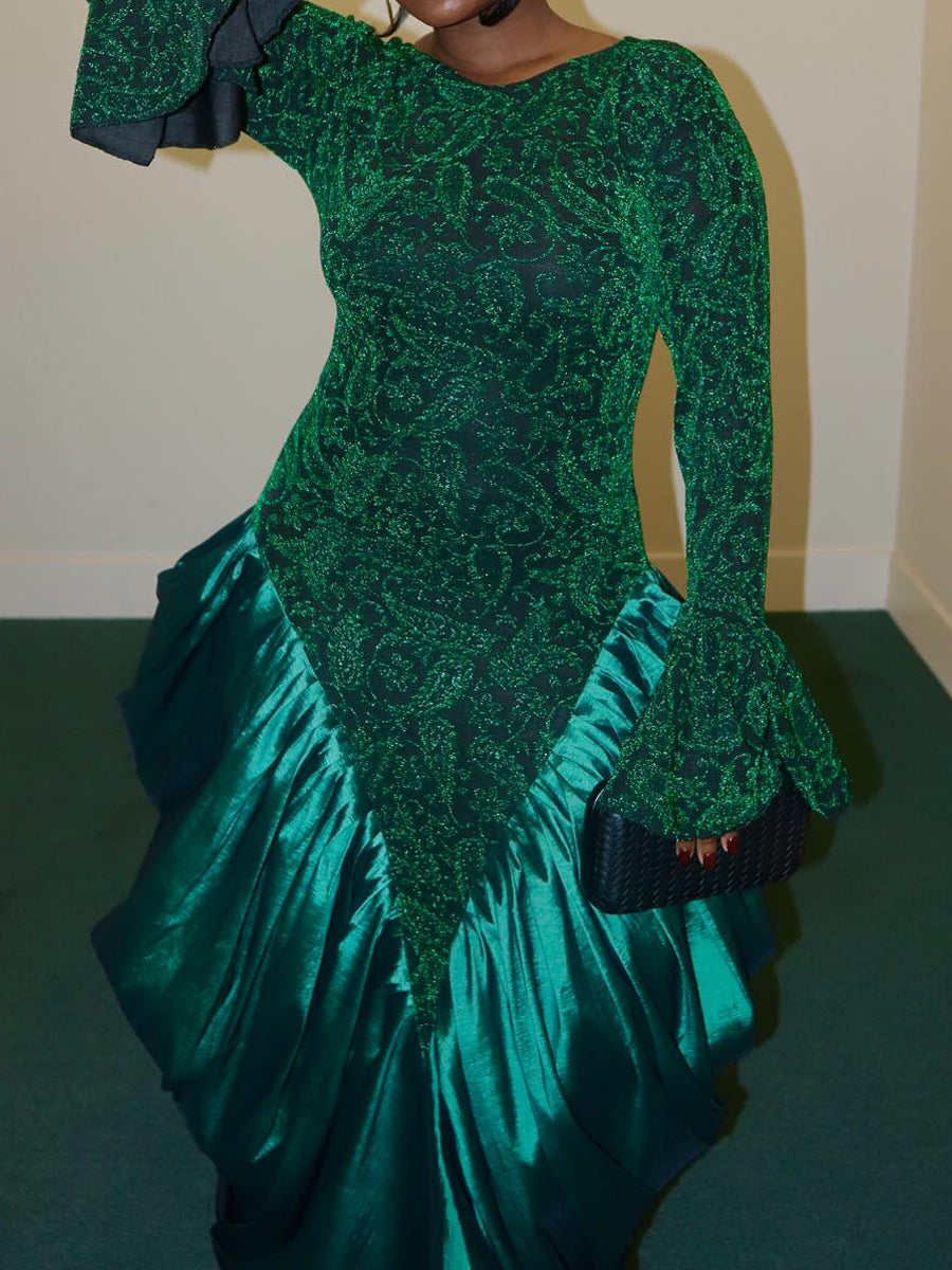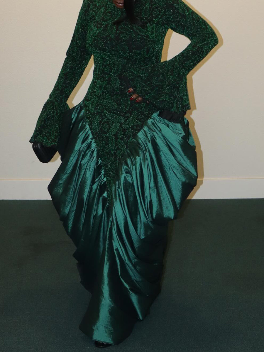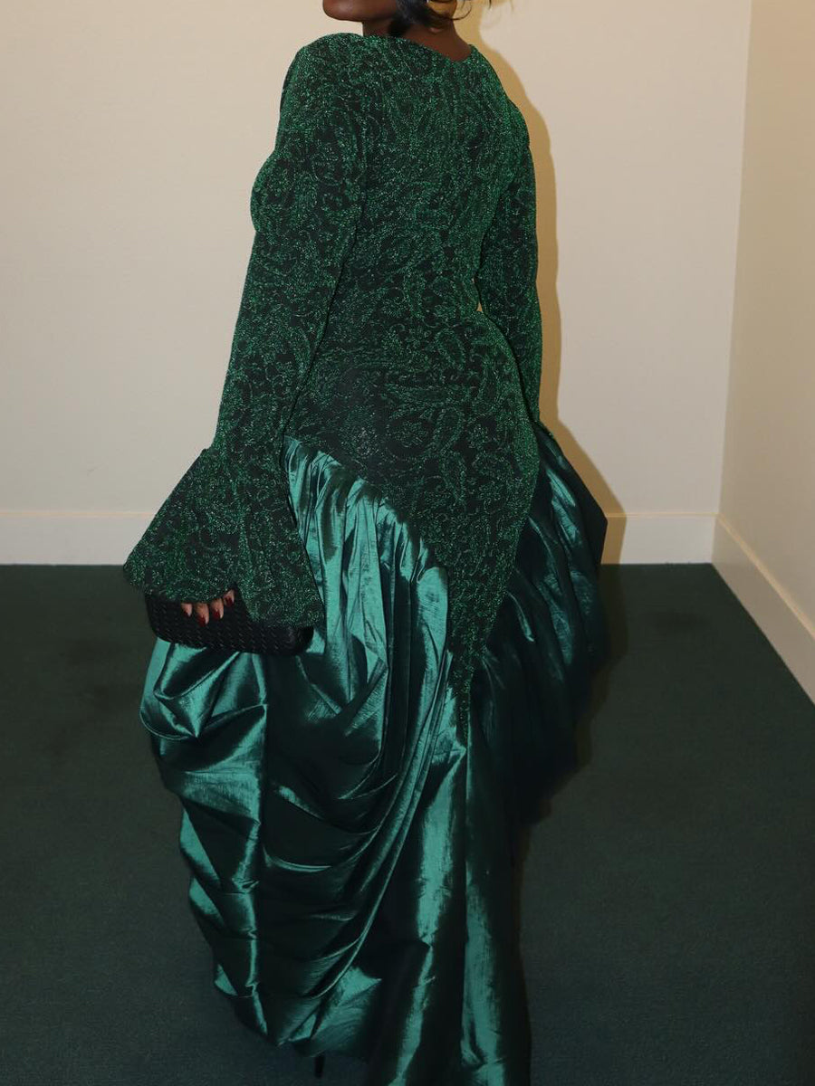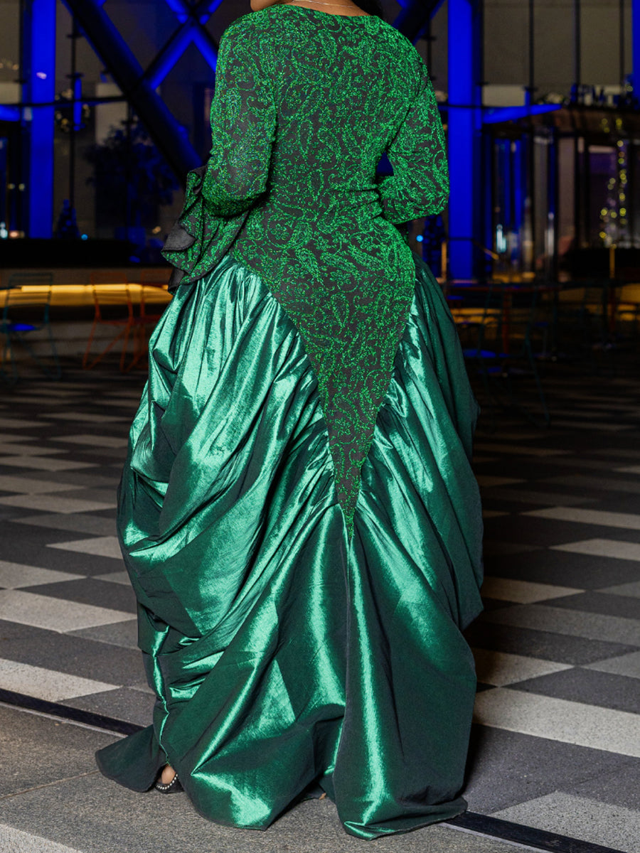 The Lush Dress is designed to make you feel regal, confident, and beautifully set apart. It features an ultra-stretchy, figure-flattering bodice paired with a richly gathered raw silk skirt that adds soft volume and graceful movement.
