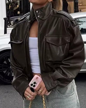 Faux Leather Short Jacket