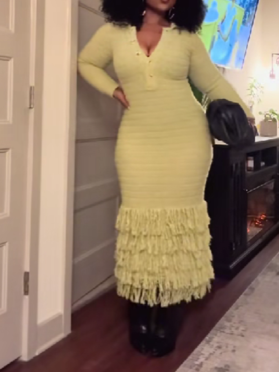 Fringed Sweater Maxi Dress