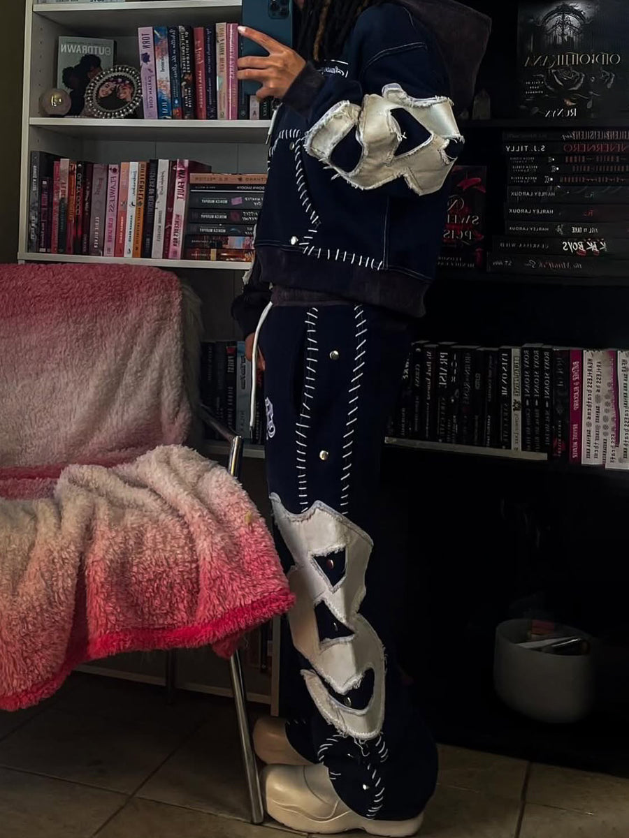 Hooded Embroidered Drawstring Waist Two Pieces Set