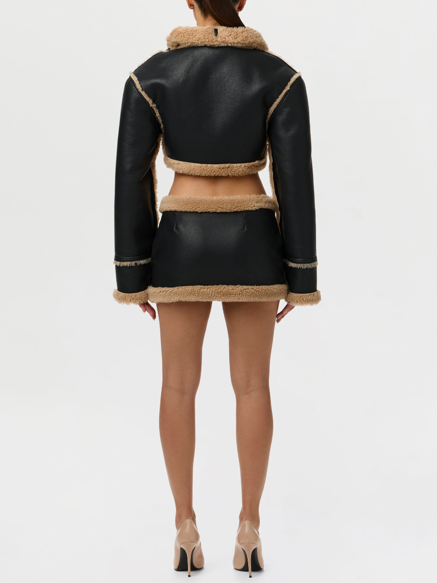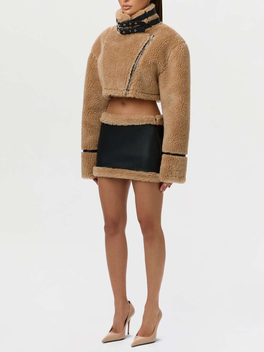 Get two edgy looks on one hanger with a reversible jacket made from rugged, wool-kissed faux shearling and cut to a sassy cropped length.